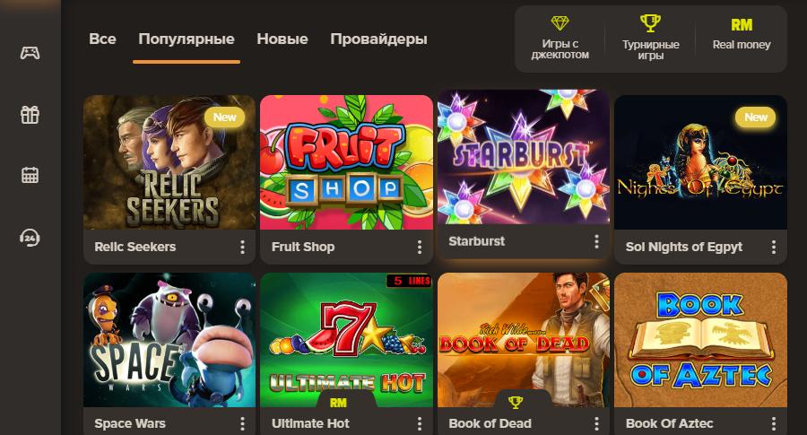 На главной странице игрового дома размещено множество развлечений, игра на реальные деньги в которые доступна только зарегистрированным пользователям. Чтобы пользователю было удобнее ориентироваться, все азартные развлечения разделены по категориям: