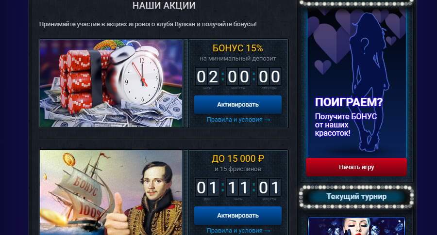 Проверенный временем клуб Вулкан дает доступ к игровым автоматам, рулеткам и другим азартным играм на деньги с быстрым выводом. Любители риска из России и стран ближнего зарубежья наверняка знают заведения, оно было безумно популярным в девяностых годах прошедшего века и имело исключительно незапятнанную репутацию. Старый Вулкан был представлен в большинстве столиц и крупнейших городах стран СНГ и многие геймеры заработали свои первые крупные выигрыши именно на слотах этого игорного заведения.