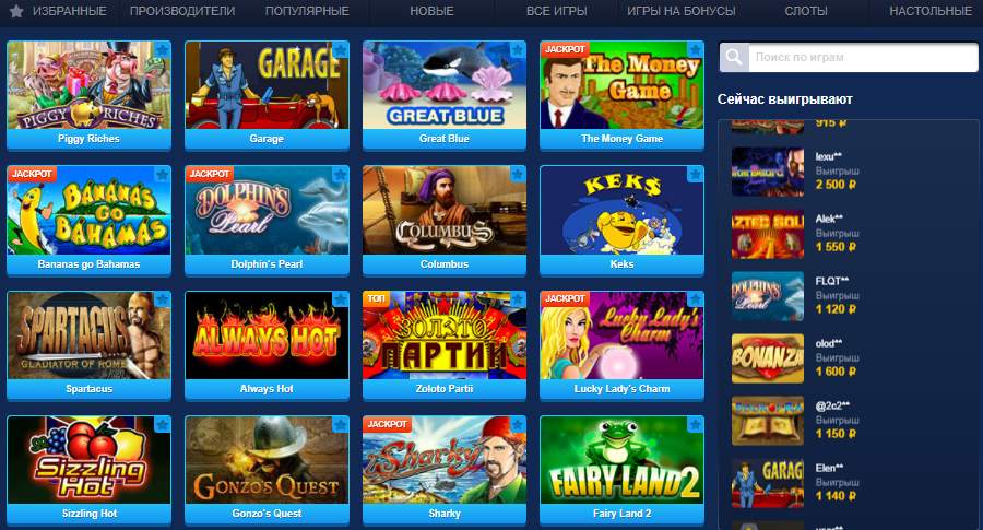 - Игры:Слоты, рулетки, карточные, настольные, лотереи