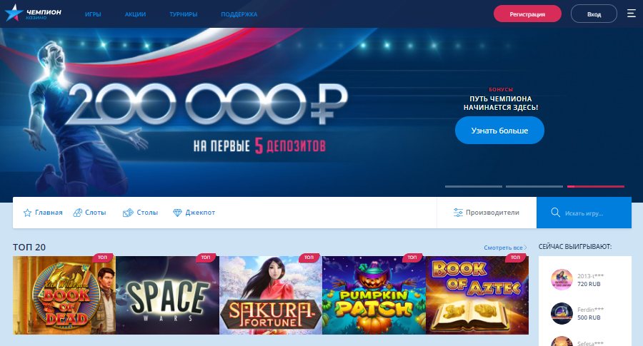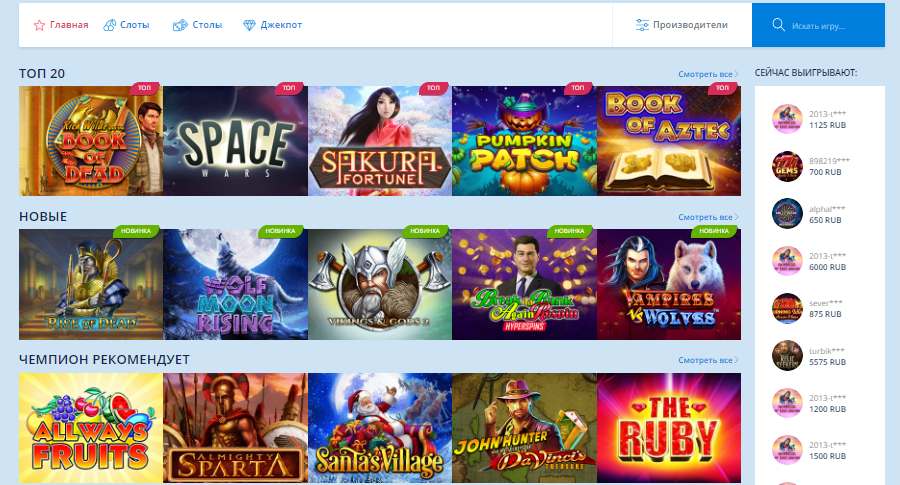 Игровой клуб Чемпион считается одним из лучших, не смотря на свой возраст. Казино активно работает с 2025 года, и за такой незначительный срок уже успело покорить тысячи гемблеров.