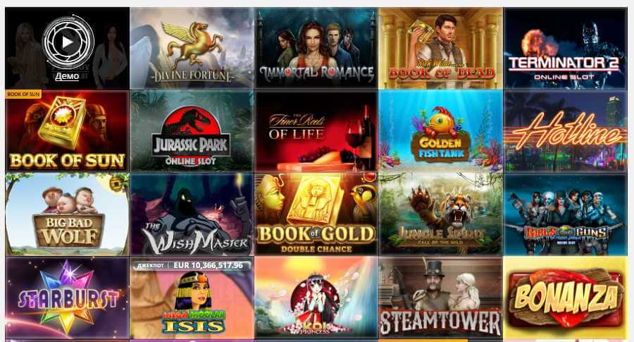 - Игры:500 игровых автоматов, настольные, живые дилеры